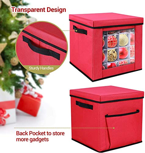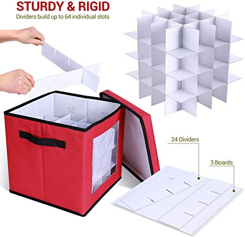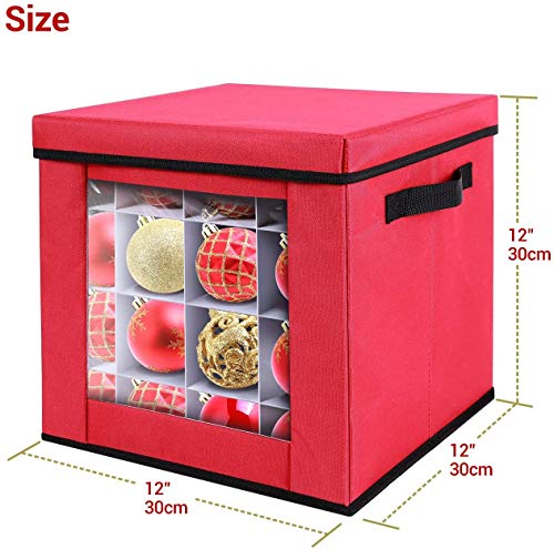 Scatola di conservazione multifunzionale: Non sarebbe bello poter conservare tutti i tuoi ornamenti natalizi senza stress? Misurando 31*31*31 cm, la scatola di conservazione per gli ornamenti di Natale Ohuhu con inserti di cartone può contenere 64 palline decorative o qualsiasi altro piccolo ornamento.