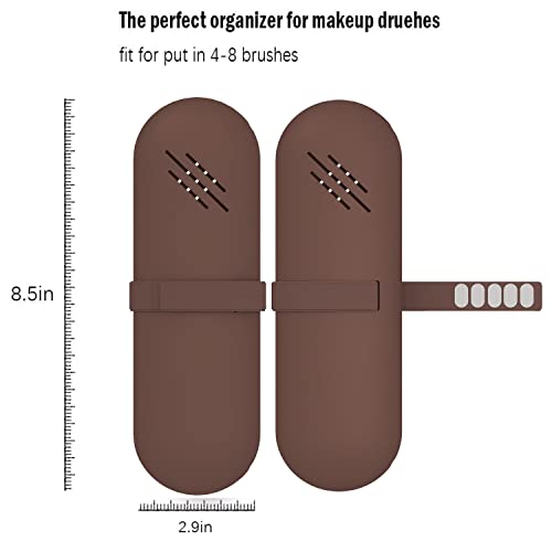 Porta Pennelli da Trucco Supporto per Pennelli Trucco in Silicone da Trucco alla Moda e Portatile per Viaggi D'affari,Viaggi,Shopping,Organizer per Pennelli da Trucco,Custodia da Viaggio-Marrone Scuro