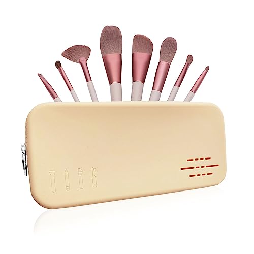 Porta Pennelli Make Up da Viaggio in Silicone Portapennelli da Trucco Professionale Astuccio Porta Pennelli da Viaggio Custodia Porta Pennelli da Trucco Porta Penelli Trucchi per Donne,Ragazze-Cachi