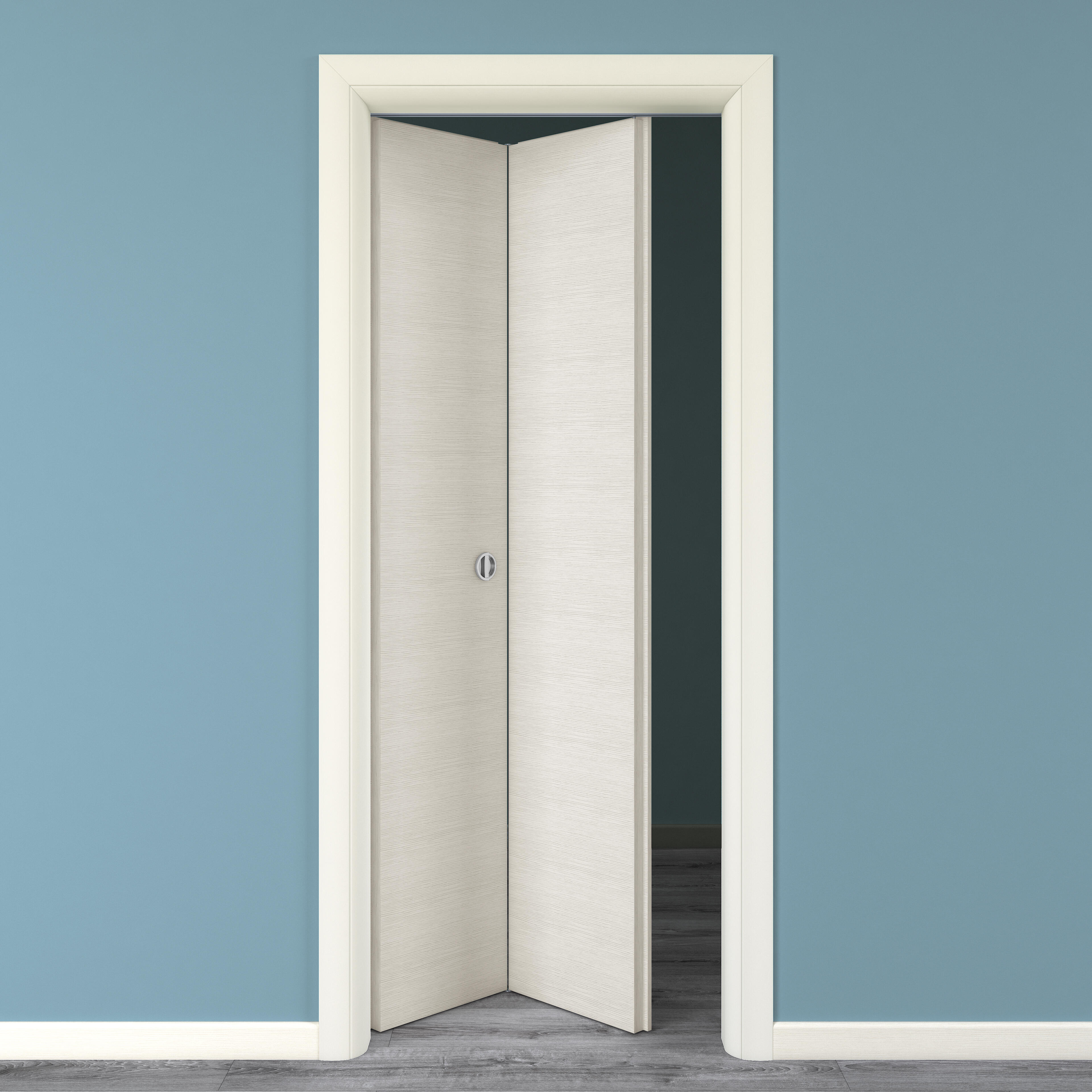 In laminato, telaio tondo, coprifili ad incastro. Con maniglia inclusa. Qualità Standard, porta con un buon rapporto qualità e budget. Perfetta per una casa di proprietà. Apertura pieghevole, ideale per utilizzare al meglio lo spazio di apertura. Finitura resistente e funzionale. Il laminato resiste ai graffi ed è molto facile da pulire. Effetto spazzolato che riproduce le venature del legno donando un effetto materico molto naturale. Soluzione salvaspazio con ingombro ridotto di apertura dell'anta