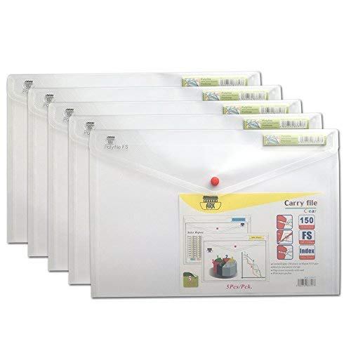 ARK Porta file a portafoglio con chiusura a bottone a pressione, confezione da 5 (trasparente, Foolscap)