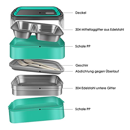 【MATERIALE ALIMENTARE】 Il bento box è realizzato in materiale PP alimentare.Il rivestimento interno del schiscetta pranzo è realizzato in acciaio inossidabile 304 di alta qualità, adatto per alte temperature fino a 120 °C. È privo di BPA, non tossico, inodore e molto resistente.