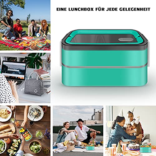 Porta Pranzo Termico Lunch Box Bento Box Con Borsa Termica 2x600ML Portapranzo Per Adulti per Bambini Senza BPA Grado di sicurezza alimentare Gavetta Con Due Scomparti