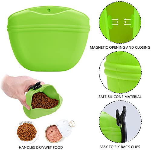 Porta Premi Per Cani in Silicone, Clip on Porta sacchetti Portatili Cane da guinzaglio Con Sacchetti Per Cani e Clicker Per Cani, Comoda Chiusura Con Fibbia Magnetica e Clip in Vita - BPA Free, Verde