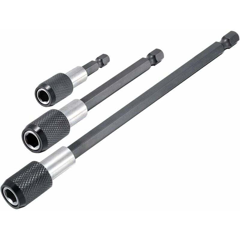 3 portapunte inclusi 2", 4", 6" (60 mm/100 mm/150 mm), soddisfano le diverse esigenze, piccoli e portatili. . Codolo esagonale da 6,35 mm, cambio e sgancio rapido, compatibile con tutti i trapani elettrici, avvitatori a percussione da 6,35 mm e avvitatori portatili. Kit di estensione per tutti i tipi di punte per cacciavite, teste per cacciavite. . Il sistema di cambio e sgancio rapido consente di installare, bloccare e sbloccare rapidamente il morso. Il porta punte magnetico aiuta a raccogliere e trattenere le viti. . Realizzato in acciaio al cromo vanadio (CR-V), trattato termicamente, elevata durezza, resistenza all'usura, durevole e lunga durata. Forte magnete permanente incorporato (la parte del foro), tiene saldamente le punte, ottimo per lavorare con viti difficili da raggiungere. . Questo portapunte magnetico è ideale per il tensionamento di tutti i tipi di punte per cacciavite, trapani, testine di fissaggio, teste di cacciaviti. Questo set renderà molto più facile entrare in