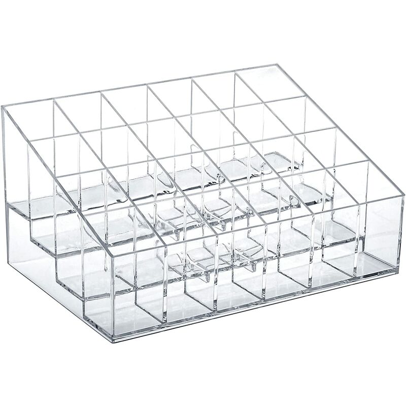 Dimensioni: 5,70"(L)x3,8"(W)x2,9"(H), ogni dimensione dello slot: 0.86"(L) x 0.86"(W) x 1.69"(H), che è un piccolo porta rossetto in plastica ORGANIZZATORE PER ROSSETTI A 24 SLOT: Si adatta a quasi tutti i lucidalabbra/rossetto liquido/rossetto, si adatta anche alla maggior parte dei tubi per mascara standard, perfettamente compatto Concetto di design: Disposizione 4 righe e 6 colonne. La disposizione a gradini ti consente di scoprire e mostrare più facilmente i tuoi strumenti per il trucco o il trucco CASA E COMMERCIALE: Crea la vetrina per vanità chic ideale per conservare, organizzare e mostrare il trucco a casa, nel salone di bellezza o nel negozio. L'espositore perfetto per rossetti o prodotti per le labbra LAVABILE E GRANDE REGALO: Facile da pulire con acqua o lavastoviglie;