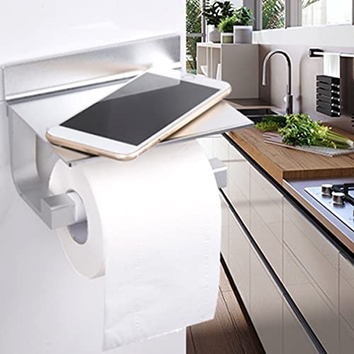 Porta rotolo di carta igienica autoadesiva, porta carta igienica in alluminio con piano di stoccaggio, porta asciugamani da bagno impermeabile per contenere rotolo di carta, asciugamani