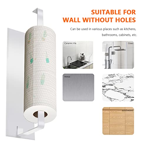 Porta Rotolo da Cucina da Parete 2 Pezzi Autoadesivo Portarotolo Cucina Multiuso Porta Fazzoletti da Parete per Cucina Bagno Camera da Letto(Bianco)
