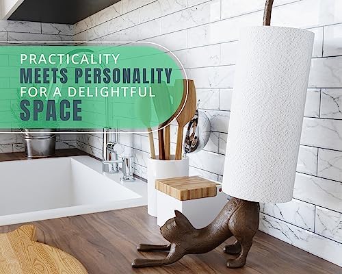Porta salviette di carta decorativo - Il design stravagante di "lo stretching del gatto" si adatta a tutti i tipi di arredamento della cucina, aspetto pulito ed elegante di ghisa di finitura anticata migliora la tua casa con eleganza e fascino.