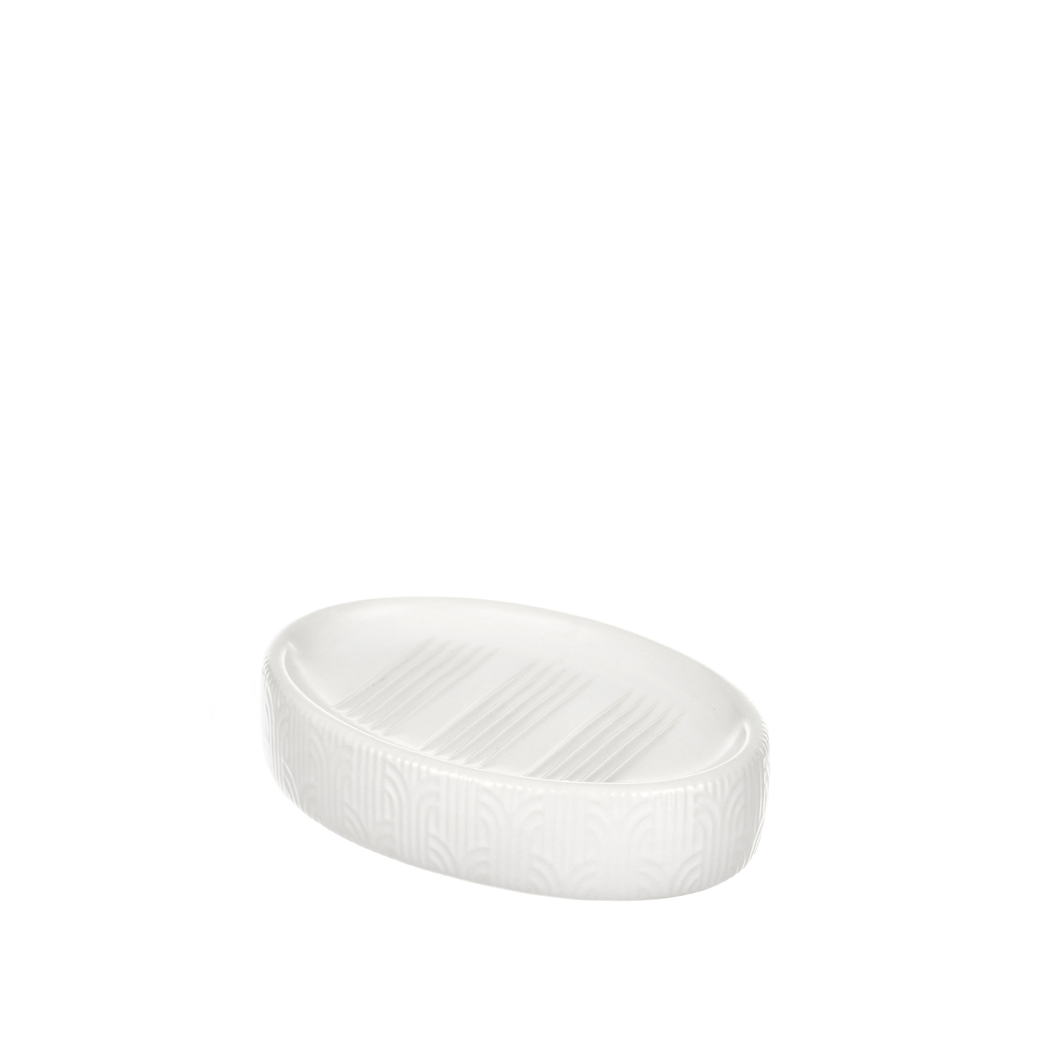 Completa il tuo bagno con questo pratico piattino per saponetta in stoneware bianco decorato. Caratterizzato da una forma tondeggiante e design essenziale, sarà perfetto in qualsiasi bagno, anche il tuo! La struttura concava assicura massima stabilità del sapone, evitando che scivoli sul piano del bagno. Posizionalo accanto al lavandino per avere la tua saponetta preferita per lavare mani e viso ogni giorno. Potrai creare il tuo set coordinato acquistandolo insieme al porta spazzolino e al dosa sapone della stessa linea. Dimensioni: 12,5x2,9x8,5 cm.