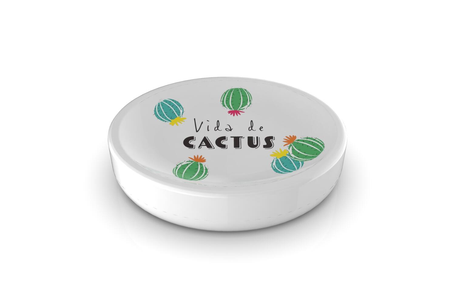 Cactuts porta sapone in ceramica bianca con decalcomania con cactus colorati. arredamento fun, non convenzionale. una idea regalo originale per tutte le eta'.. adatto sia ad ambienti formali, dando un tocco di vivacita', sia a tipologie di arredamento piu' informali. design compatto e funzionale, ideale anche in spazi ridotti.. facile da pulire