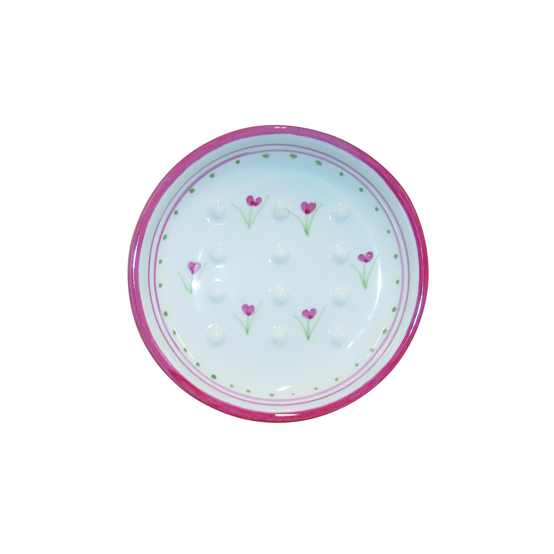 In ceramica con decoro a mano rosa e verde, Ø 13 x H 2,5 cm. Da appoggio. Facile da pulire. Ottima resistenza ai graffi