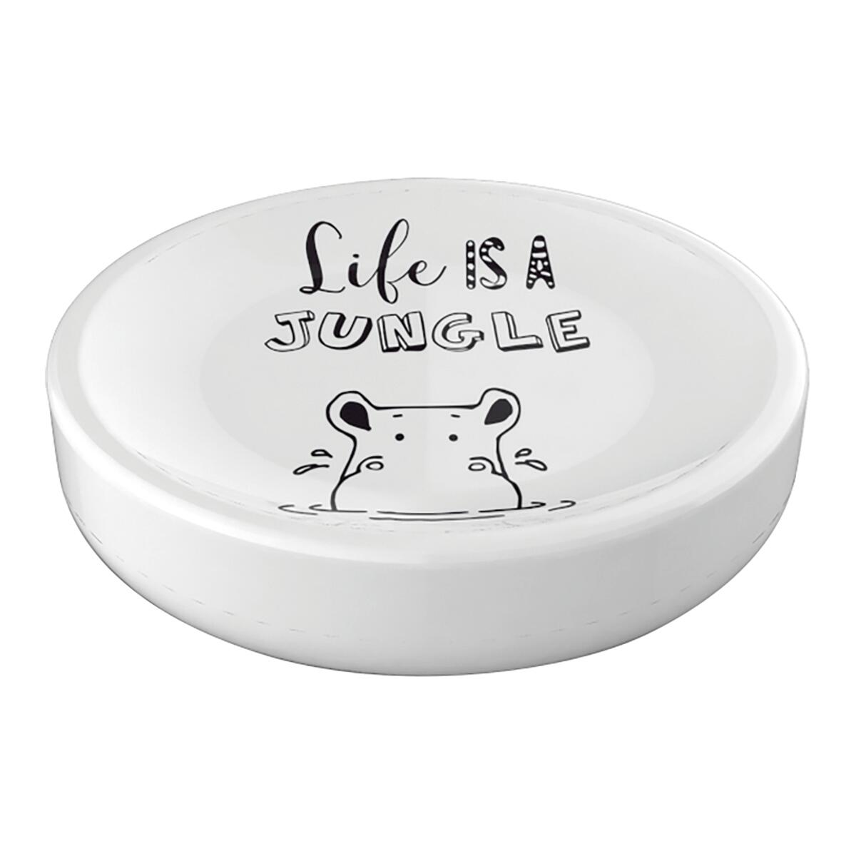 Jungle porta sapone in ceramica bianca con decalcomania di simpatici animali della giungla. arredamento fun, non convenzionale. una idea regalo originale per tutte le eta'.. adatto sia ad ambienti formali, dando un tocco di vivacita', sia a tipologie di arredamento piu' informali. design compatto e funzionale, ideale anche in spazi ridotti.. facile da pulire