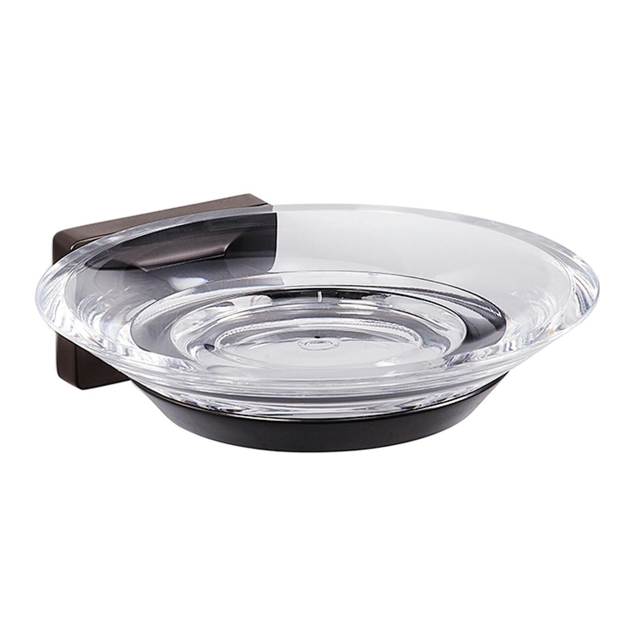 Porta sapone in acrilico, L 11,9 x H 3,8 x P 12,9 cm, supporto in zama nero. Fissaggio con tasselli