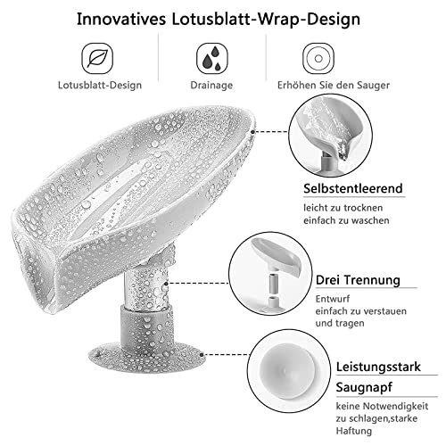 Porta Saponetta 2PCS Grigio Plastica Portasapone in Spugna Forma Foglia Scatola Portasapone con Ventosa Mantenere Il Sapone Pulito A Secco, Adatto Per Cucina, Bagno, Bancone, Doccia,lavabo