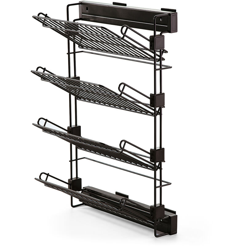 Il porta scarpe laterale estraibile Moka permitte di organizzare in modo efficiente lo spazio interno degli armadi e cabine armadio. E' prodotto in acciaio con finitura verniciata in marrone moka e plastica, e le sue guide dispongono inoltre di chiusura soft . Prodotto in acciaio verniciato color moka. Per il motaggio a lato destro. Guide con chiusure soft. Dispone di 4 vassoi con inclinazione regolabile. 1 porta scarpe laterale estraibile, ferramenta e istruzioni di montaggio Mano destra Verniciato moka Acciaio