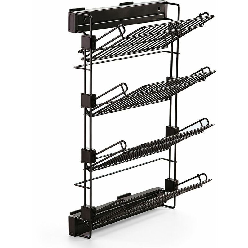 Prodotto in acciaio verniciato color moka. Per il montaggio a lato sinistro. Guide con chiusure soft. Dispone di 4 vassoi con inclinazione regolabile. https://www.youtube.com/watch?reload=9&v=h0cr96DDu14