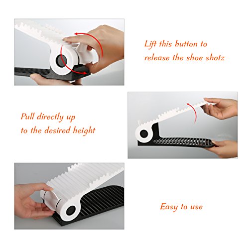 【Regolabile】Potrete aggiustare l'altezza di questo supporto per scarpe, ed è quindi adatto per le scarpe piatte e per le scarpe con tacco alto. Non è però adatto per gli stivali. Questa soluzione consente di ripiegare la struttura quando non avete bisogno di usarla.