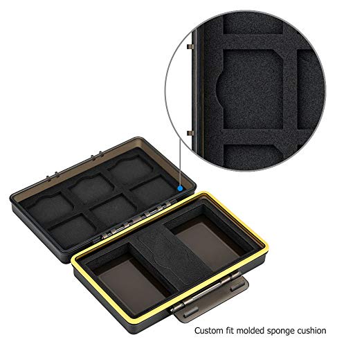 [Protezione efficace] Il resistente morsetto in resina assicura che le carte siano bloccate in sicurezza lontano da condizioni meteorologiche, acqua, umidità, polvere e qualsiasi altra cosa che potrebbe danneggiare le schede di memoria e le batterie