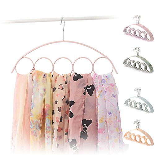 Porta sciarpe, antiscivolo, scialle Holder rack con 5 anelli multifunzionale guardaroba gruccia per sciarpe, cravatte, cinture Taglia libera rosa