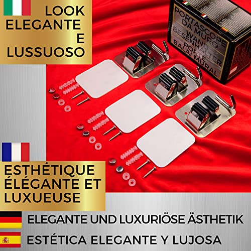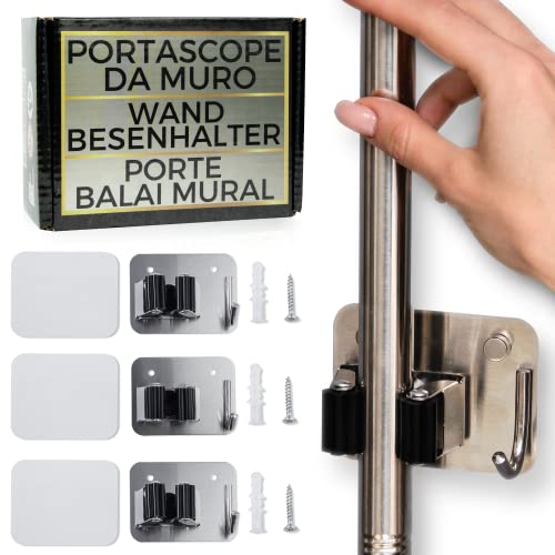SIA ADESIVO CHE VITI. il porta scope parete può essere installato sia con adesivo incluso, che con le viti. perchè ci sono superfici su cui basta un adesivo potente per il portascope da muro appendibile, e non serve fare buchi, e invece ci sono superfici, come legno, muri o pietra, che richiedono viti con tasselli per parete. include adesivo, viti, tasselli, e eleganti copri viti in metallo che Donano un aspetto curato e prezioso. appendi scope a muro ideale per luoghi lussuosi eleganti estetici