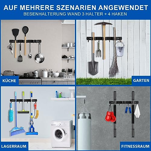 Porta Scope Parete, 3 Supporti + 4 Ganci Portascope, Portascope da Muro, Appendi Scope a Muro, Portascope da Muro Appendibile, Ganci per Scope da Muro