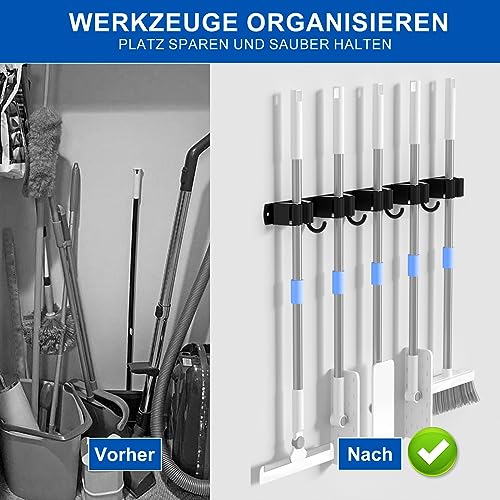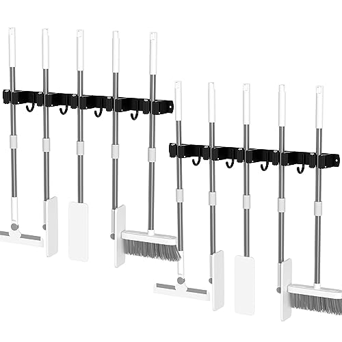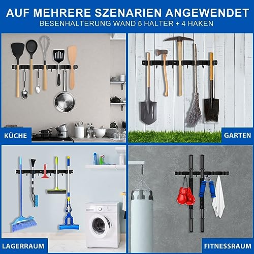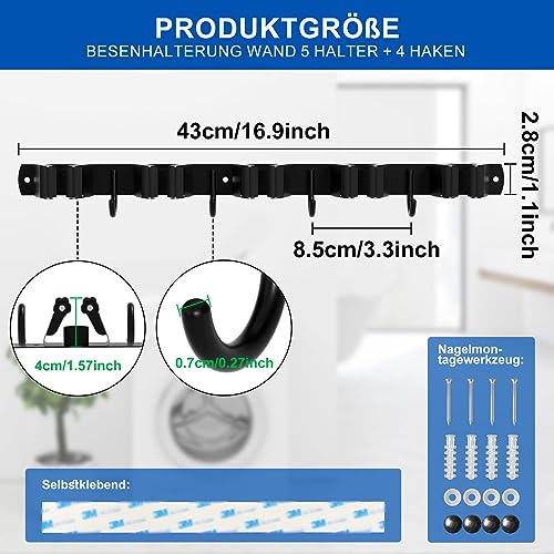 Porta Scope Parete, 2 Pack 5 Supporti + 4 Ganci Portascope, Portascope da Muro, Appendi Scope a Muro, Portascope da Muro Appendibile, Ganci per Scope da Muro