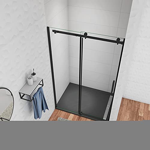 AICA Porta scorrevole doccia 120x200cm Box Doccia a Nicchia PROFILO NERO OPACO Vetro Temperato 8mm Anticalcare