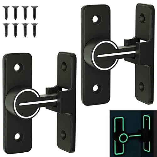 2PCS Porta Scorrevole Lock, MK-008 90 Gradi Deadbolt Lock, Blocco ad Angolo Retto, Fibbia Porta con Quattro Viti per le Porte Della Camera Porte Bagno Porte Scorrevoli Ecc (Nero Luminoso)