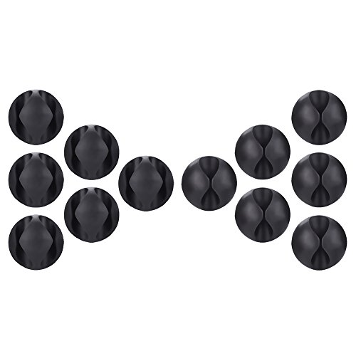 Cavo Clip Porta Cavo da Scrivania Sistema di Gestione per Computer, Ricarica o il Cavo Mouse, 12 Pezzi Nero