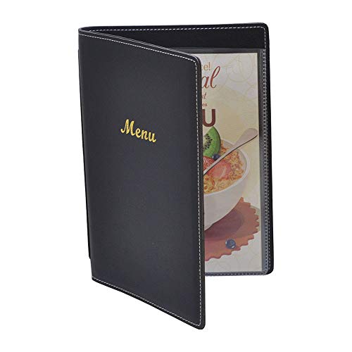 Porta menù in similpelle, confezione da 6, dimensione A5, colore nero