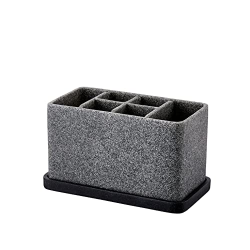 Zccz Porta spazzolino e dentifricio - Porta spazzolino elettrico multifunzionale da banco con 6 scomparti - Porta spazzole da trucco dentifricio rasoio organizzatore per bagno doccia - Effetto Granito