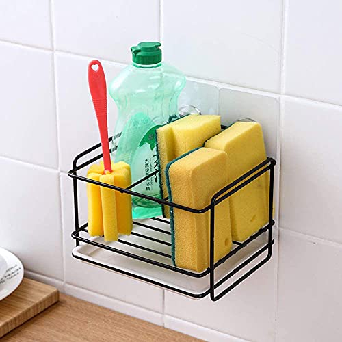 QQRR Porta Spugna Da Cucina, Porta Spugna, Organizer Per Lavello Da Cucina, con Adesivo, per Lavare i Piatti, Sapone Liquido, Spazzola, Asciugamano, Scolapiatti, Bagno (Nero)