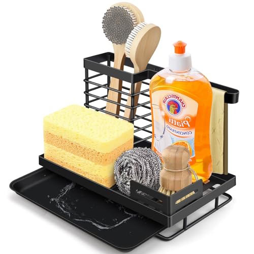 Porta Spugne Lavello Cucina, Organizer Lavello Cucina con Rimovibile Vassoio Rimovibile in Plastica Gocciolamento, Cucina Accessori, Multifunzionale Organizer per Lavello Per Lavello da Cucina