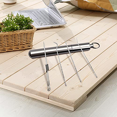 ZQO Porta Stuzzicadenti con 4 Pezzi di Stuzzicadenti Riutilizzabili in Acciaio Inossidabile, Scatola Creativa per Stuzzicadenti Portatile All'Aperto
