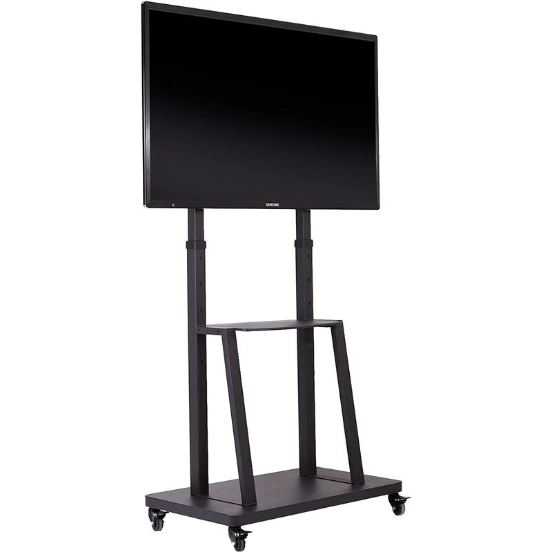 Questo versatile carrello TV è perfetto per l'uso commerciale in uffici, scuole, hotel, aeroporti, laboratori, mostre, ospedali e altro ancora. La staffa di montaggio si adatta alla maggior parte dei televisori a schermo piatto / LCD / LED da 32 a 80 pollici con una capacità di carico massima di 65 kg. La staffa di montaggio è regolabile in altezza, per consentire di trovare l'angolo di visione perfetto. L'ampia struttura della base impedisce il ribaltamento del supporto e uno scaffale inferiore offre molto spazio per il lettore DVD o altre apparecchiature AV. Dotato di quattro ruote per uso intensivo, questo carrello TV è molto mobile;