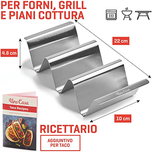 Uno Casa, set di porta tacos da 6 pezzi, porta tacos in metallo, supporto per tacos durevole per il Taco Tuesday o utilizzabile come stampino per realizzare i gusci dei tacos, Ebook con ricette