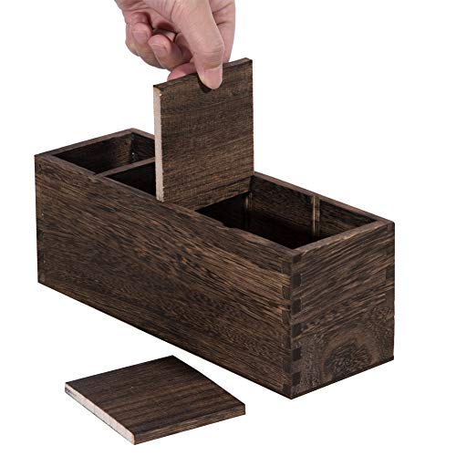 Porta Telecomandi Legno, Porta Telecomando con 4 Scomparti, Multifunzionale Supporto per Telecomando