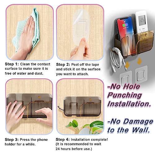 MONTAGGIO A PARETE: Supporto per telefono da parete, comodo per ricaricare il telefono e posizionare i telecomandi, facile da installare grazie al biadesivo.