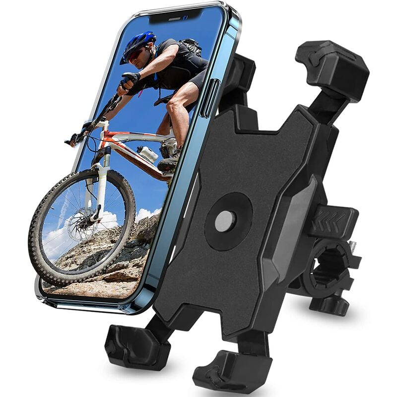 Design di blocco con un clic: questo supporto per cellulare da bici presenta un ingegnoso design di blocco meccanico con un clic, mantiene il telefono al sicuro sul manubrio della bicicletta anche su strade sconnesse. Il supporto per cellulare da bicicletta è dotato di un interruttore a sgancio rapido, metti il cellulare o prendi il telefono con una mano in un secondo, goditi una guida facile e libera. Installazione semplice: questo supporto per cellulare da bici è aggiornato con un supporto per manubrio aggiornato per un'installazione o una rimozione più facile e veloce. I 2 cuscinetti in gomma extra assicurano che il tuo telefono si adatti meglio al manubrio, puoi aggiungere o rimuovere il cuscinetto in silicone in base al diametro del manubrio. Adatto per manubri con un diametro di 2-3 cm. Design Sicuro al 100%: la costruzione meccanica bloccata, gli artigli di bloccaggio profondi e i piedini in acciaio inossidabile mantengono il tuo telefono al 100% sicuro durante la guida. Non