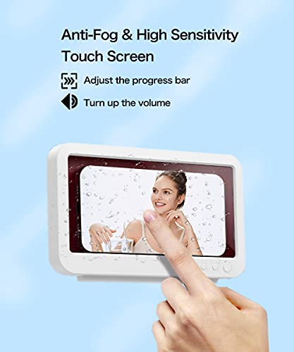 QZW Porta telefono doccia Rotatable[aggiornato], supporto per telefono a parete per bagno/vasca da bagno/cucina con supporto per telefono doccia touch screen HD anti-nebbia impermeabile (Bianco)