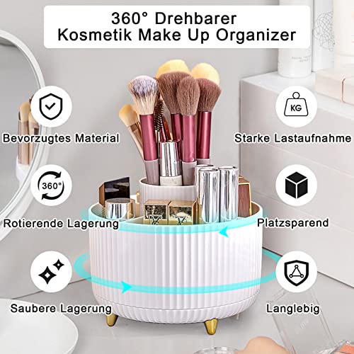 Porta Trucchi Organizer, Girevole a 360°, 5 Griglie, per Cosmetici, per Decorare la Camera da Letto-Bianco