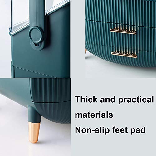 Porta Trucchi Organizzatore per Il Trucco con 2 Cassetti per Il Trucco, Parapolvere Trasparente, Spazzola per Il Trucco E Contenitore Cosmetico per Camera da Letto E Bagno (Color: Green)