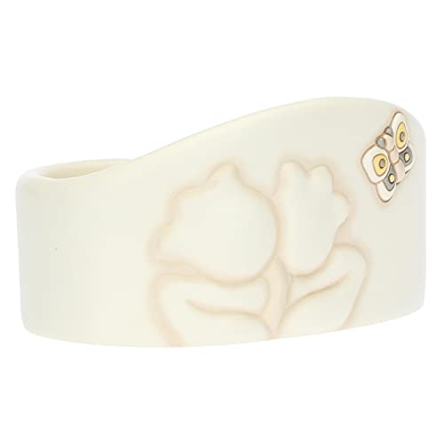Thun, Portabicchieri Doppio in Ceramica Decorata a Mano con Decorazioni Floreali e Iconica Farfalla, Linea Elegance, 18x11x9 h cm