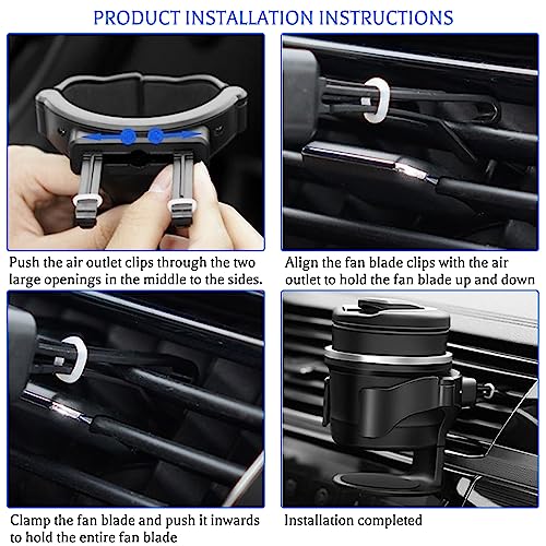 【Portabicchieri Regolabile】:Braccio di bloccaggio del portalattine auto può essere regolato in base alle dimensioni del bicchiere d'acqua (per bicchieri d'acqua con un diametro inferiore a 8,5 cm). C'è un'asta di supporto regolabile (campo di regolazione 2,5 cm) nella parte inferiore del portabicchieri, che può essere regolata in base all'inclinazione dell'uscita dell'aria per livellare il portabicchieri.