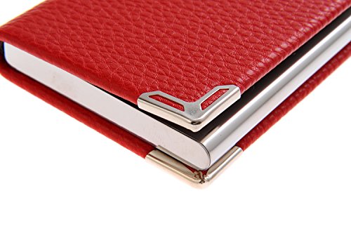 Portabiglietti da visita in similpelle con angoli rinforzati in acciaio inox, contiene fino a 19-21 biglietti, Colore: rosso, 4116-02 (DE)