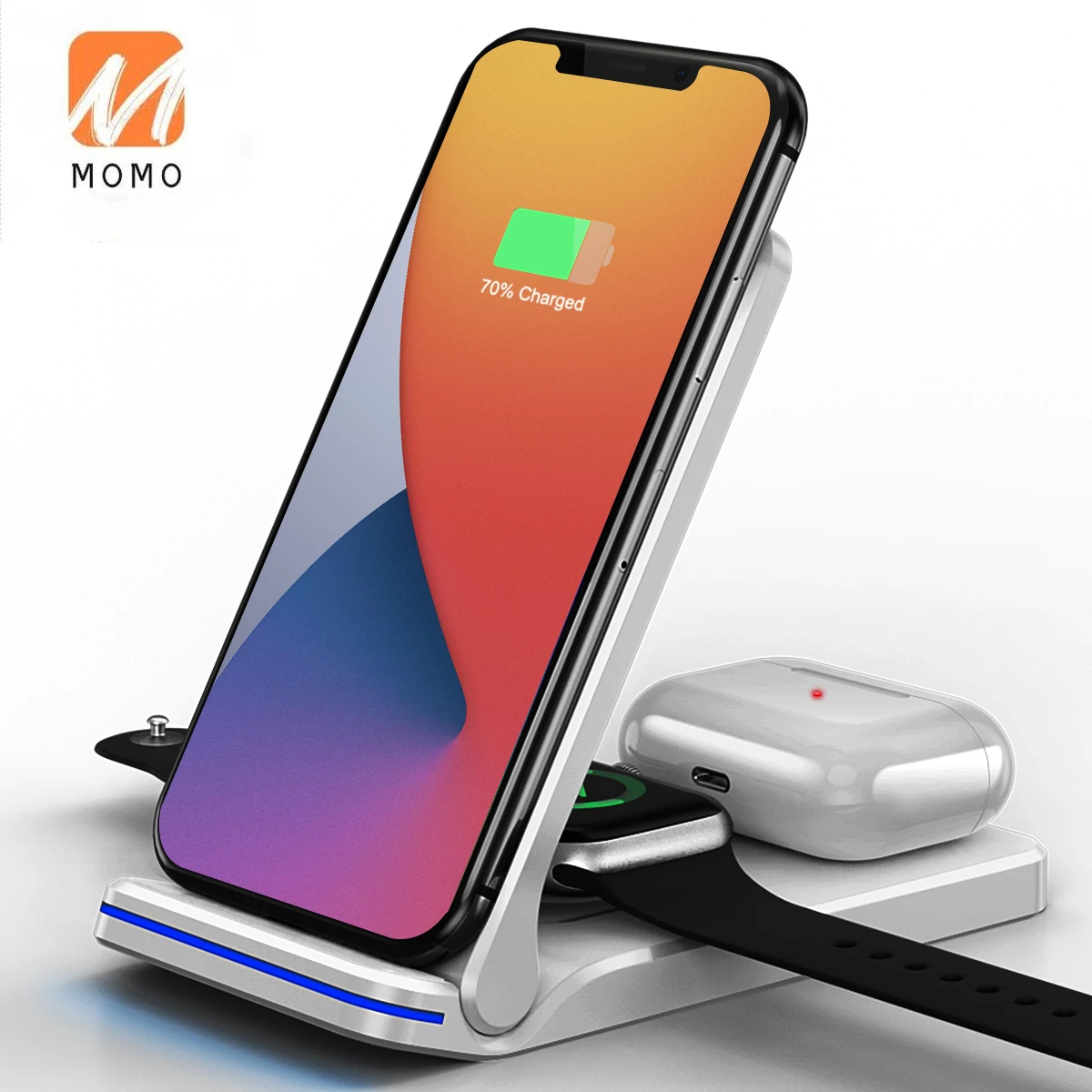 Portable Certificated Wireless Charging Station 3 in 1 Wireless Charger Charging Stand 15W
