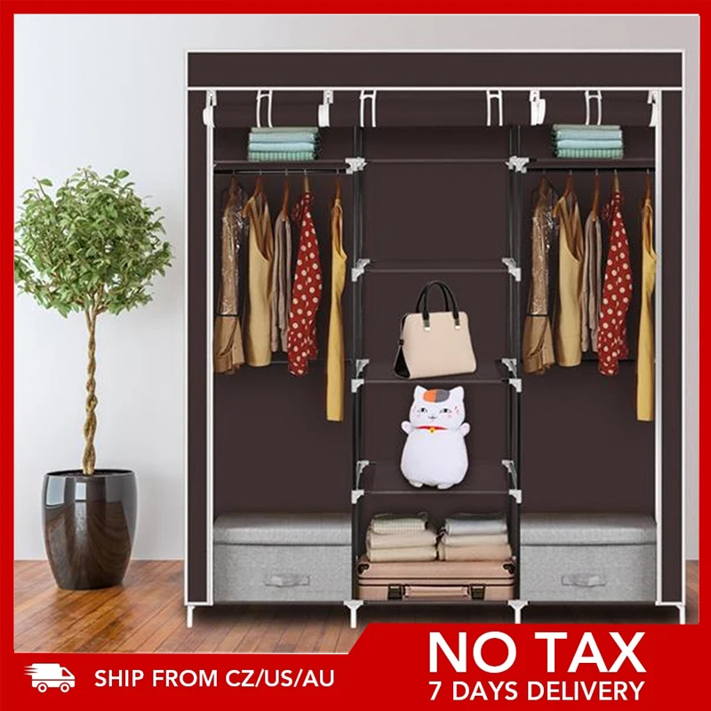 Portable Clothes Closet Non-Woven Fabric Multifunction Wardrobe Double Rod Storage Organizer Easy Install Cloth Wardrobe 4 Color