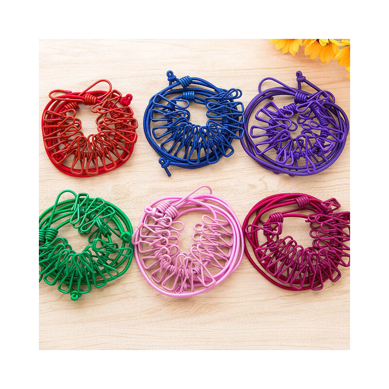 Features:Retractable,foldableIt can prevent your clothes from blowing away.Elastic rubber bands can be arbitrary stretch, the more help you air basks in clothes, durable in use.Great home and travel necessary, or out of the field and tourism,outdoor necessary, etc.Unique design with clips,portable,convenient to use in indoor or outdoor.The retractable clothesline is easy to take to the beach and use in your canopy to attach wet trunks or towels.This adjustable clothesline can hang underwear,towels,socks,cloth diapers.bathing suits,etc.Size: Length 180cmCan stretch to around 360cmSpecification: 12 clipsPackage included:1x Clothesline