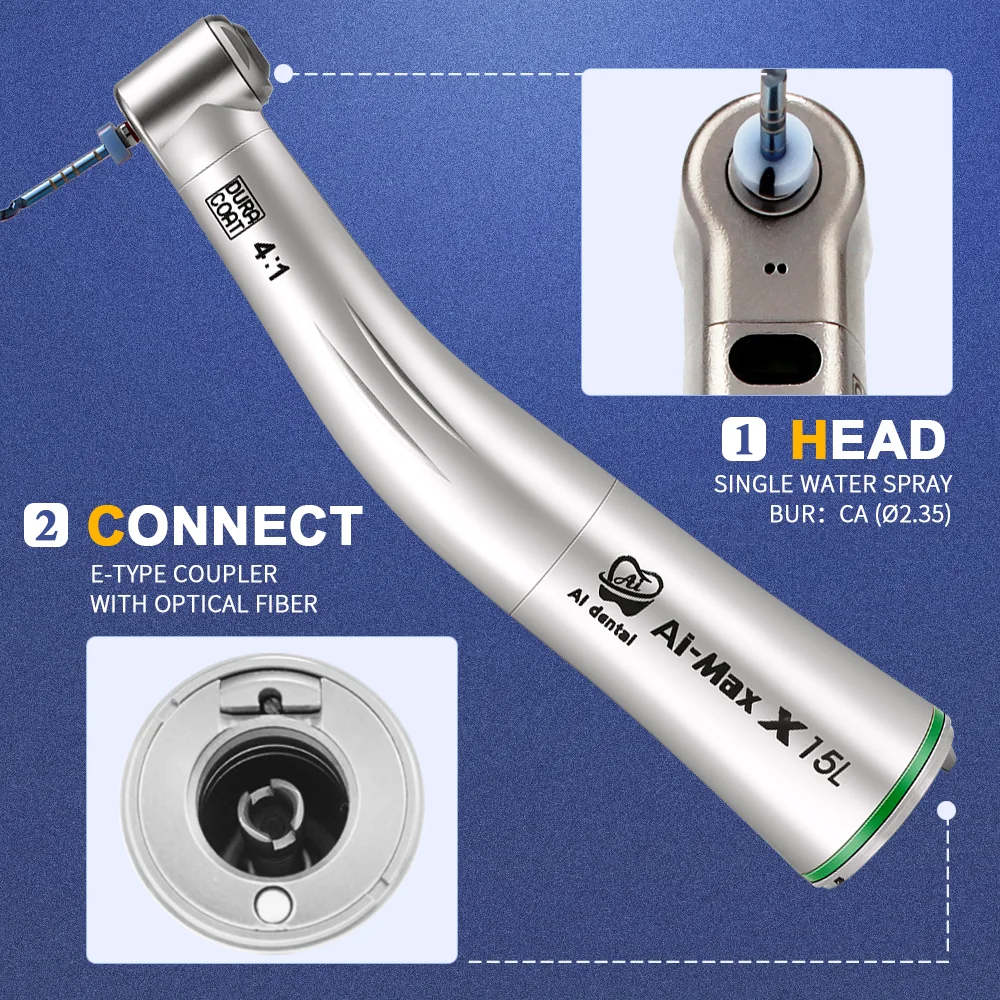 Portable dental handpiece 4:1 reduction inner water spray E-type micromotor interface contra angle handpiece X15L